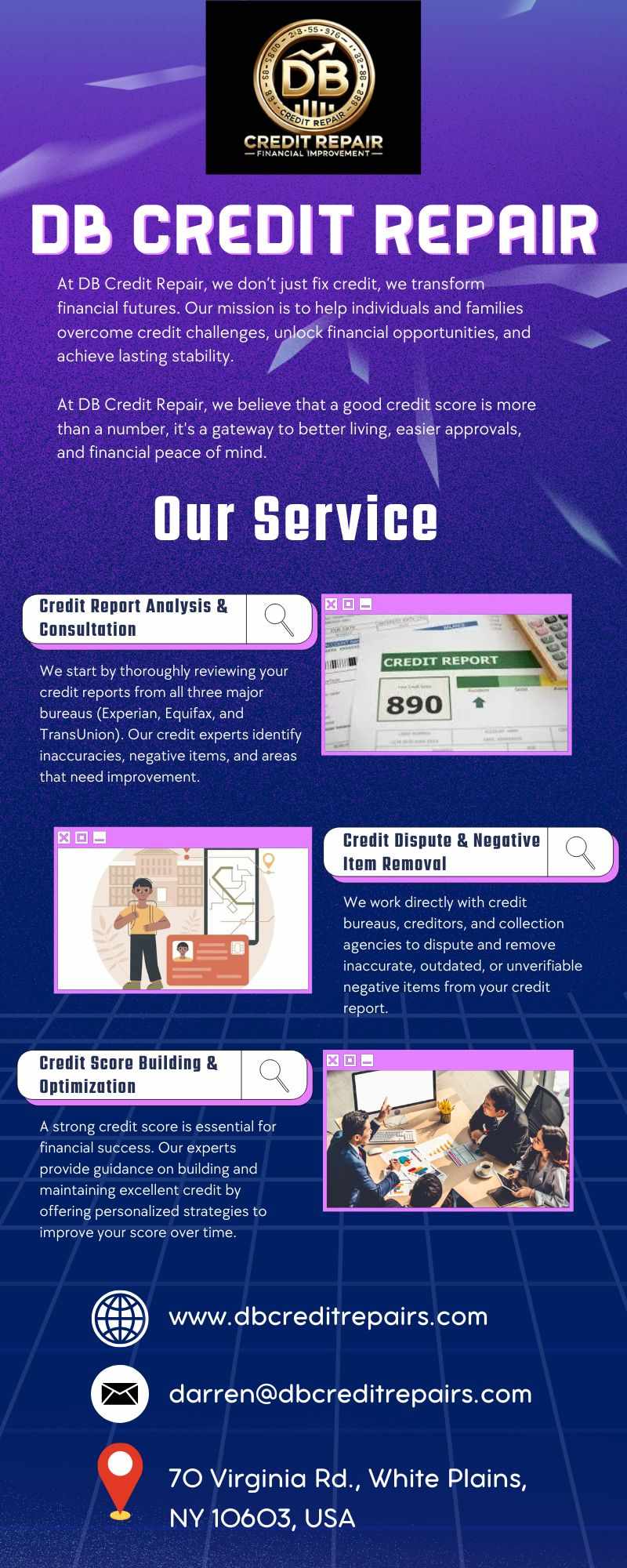 Visit Dbcreditrepairs and work with the best Credit restoration experts Yonkers to raise your score. Get back on track with your finances right now!